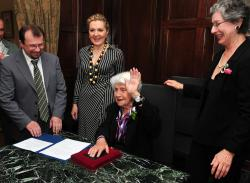 Sano Halo taking the oath for her Honorary Greek Citizenship, with Consul General