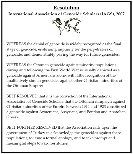 INTERNATIONAL GENOCIDE SCHOLARS ASSOCIATION OFFICIALLY RECOGNIZES ASSYRIAN, GREEK GENOCIDES